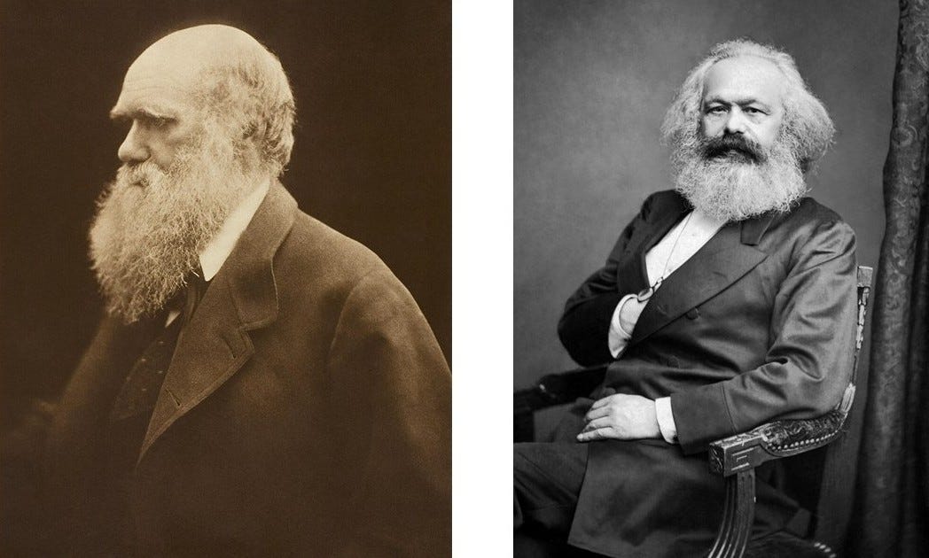 In my HIST 324 Modern Europe history course, I begin class focused on “Progress in the 19th Century” with images of Karl Marx (1818 – 1883) and Charles Darwin (1809 – 1882).