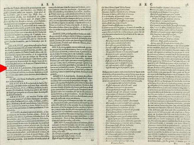 Sebastián de Covarrubias Orozco, Tesoro de la lengua castellana, o española (Madrid: Luis Sánchez, Impresor del Rey, 1611) 57 verso. See on-line https://archive.org/details/tesorodelalengua00covauoft/page/n3/mode/2up